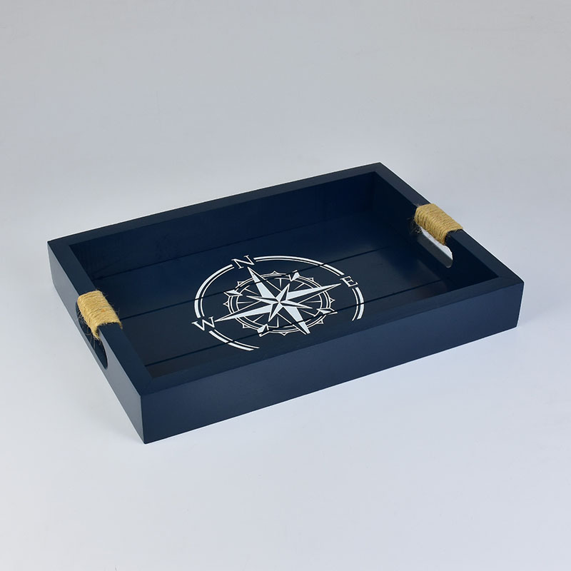 Bandeja Azul Escuro Rosa Dos Ventos em Madeira XI-87