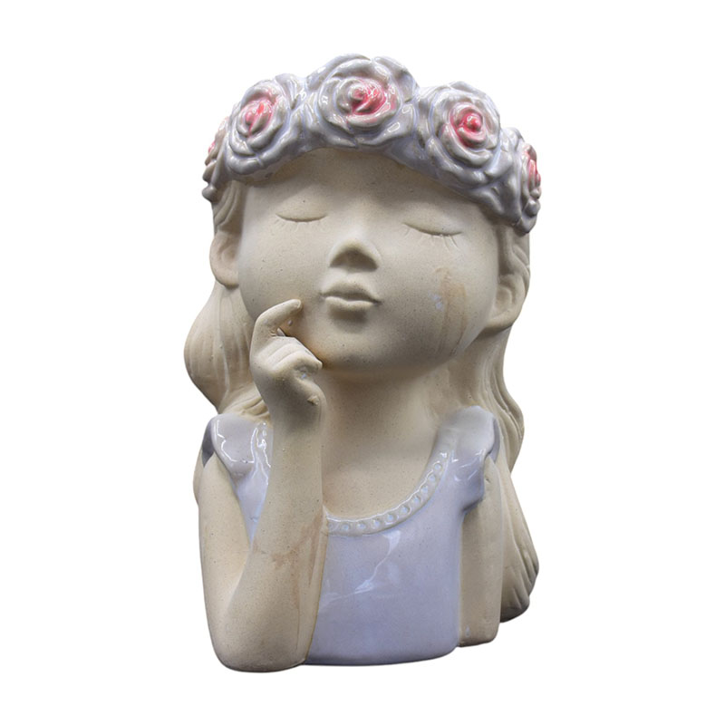 Vaso Menina Olhos Fechado Verde Flor TI-92E