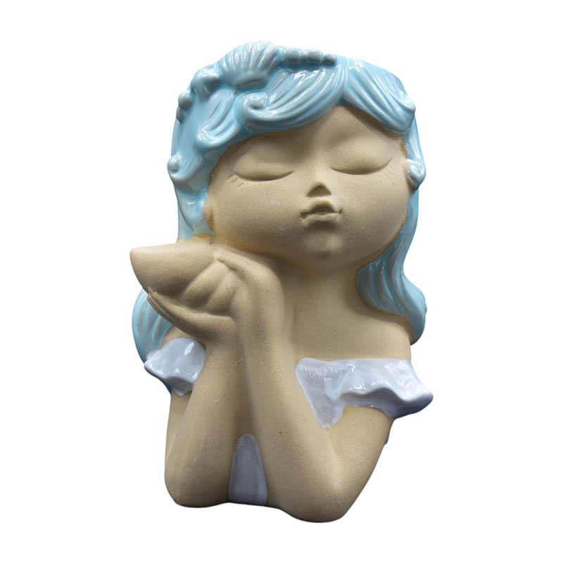 Vaso Meninas Coroa De Flores Olhos Fechados Branco/Azul