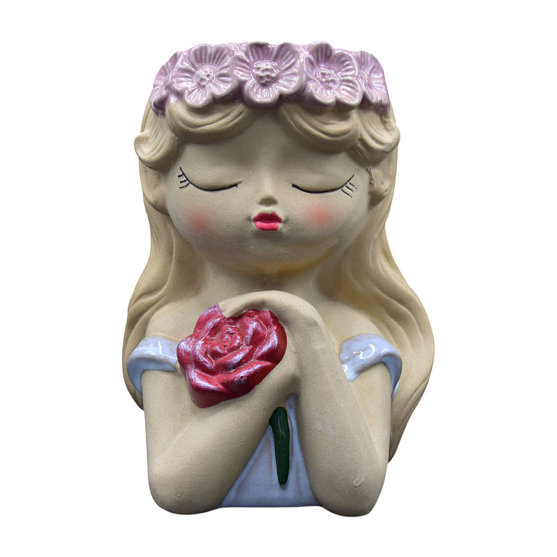 Vaso Meninas Coroa De Flores Olhos Fechados Roxo/Rosa TI-93B